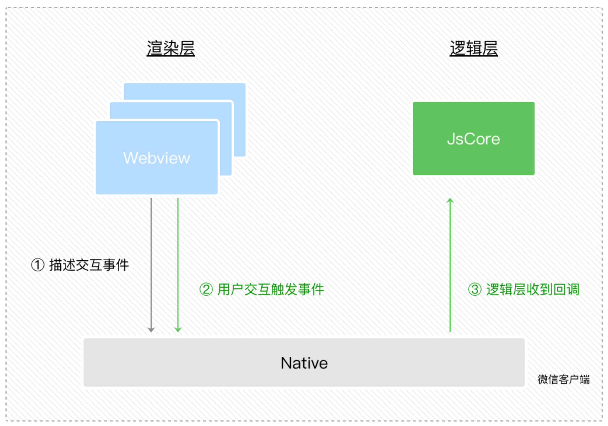 图3-7 渲染层产生用户交互事件传递给逻辑层