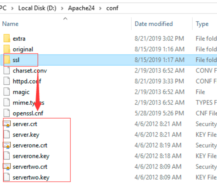 # 修改配置文件/etc/httpd/conf.d/ssl.conf,将上述文件传到指定的位置上,然后修改如下配置值即可。