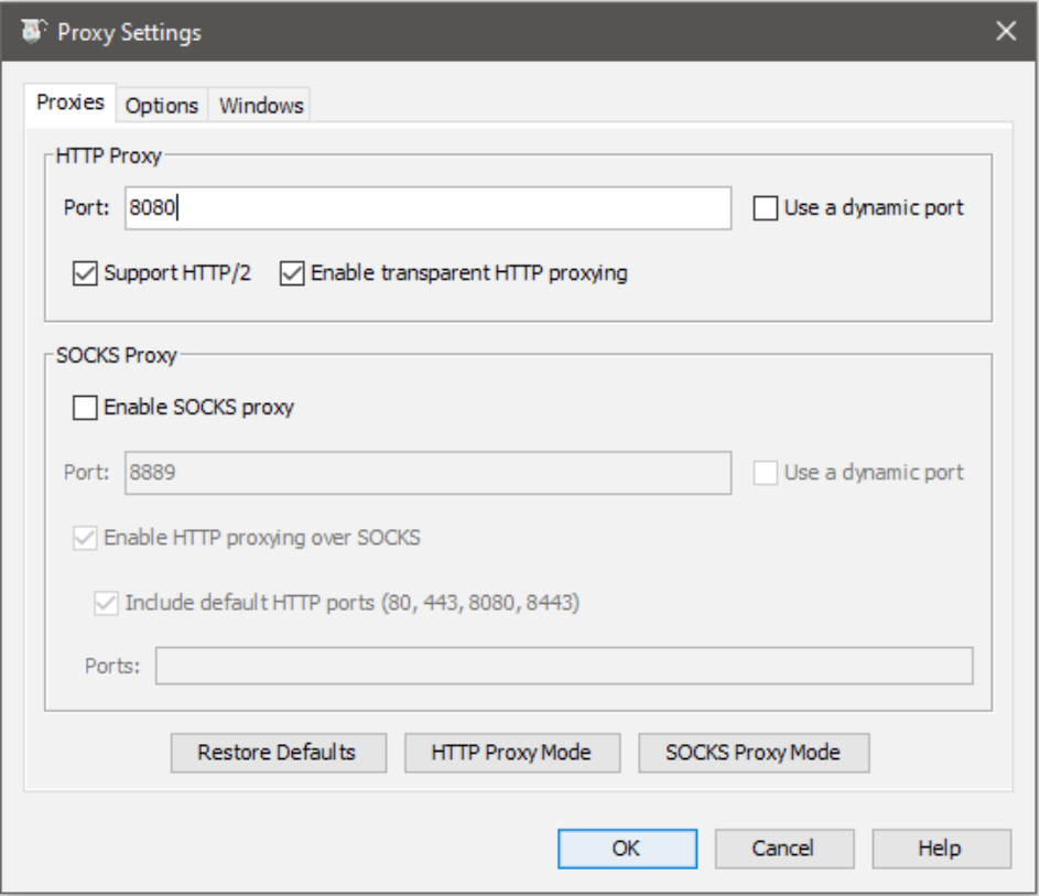 菜单:Proxy >> Proxy Setting >> 根据实际需要修改代理端口,留意如下勾选
