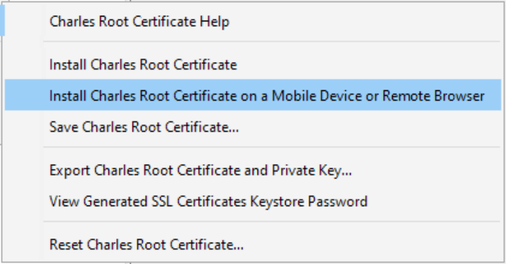 菜单:Help >> SSL Proxying >> Install Charles Root Certificate on a Mobile Device or Remote Browser