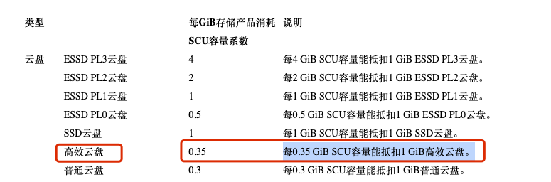SCU容量包40G,按照系数计算,可抵扣 40/0.35 = 114.26G 观察: (571 - 114.26)* 0.00049 = 0.2238026 ,之后的计费是不是 0.22/小时。